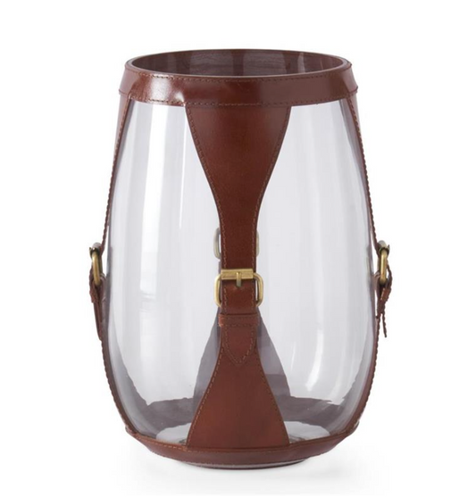 Clear Glass Hurricanes w/Leather Sleeve & Brass Buckles