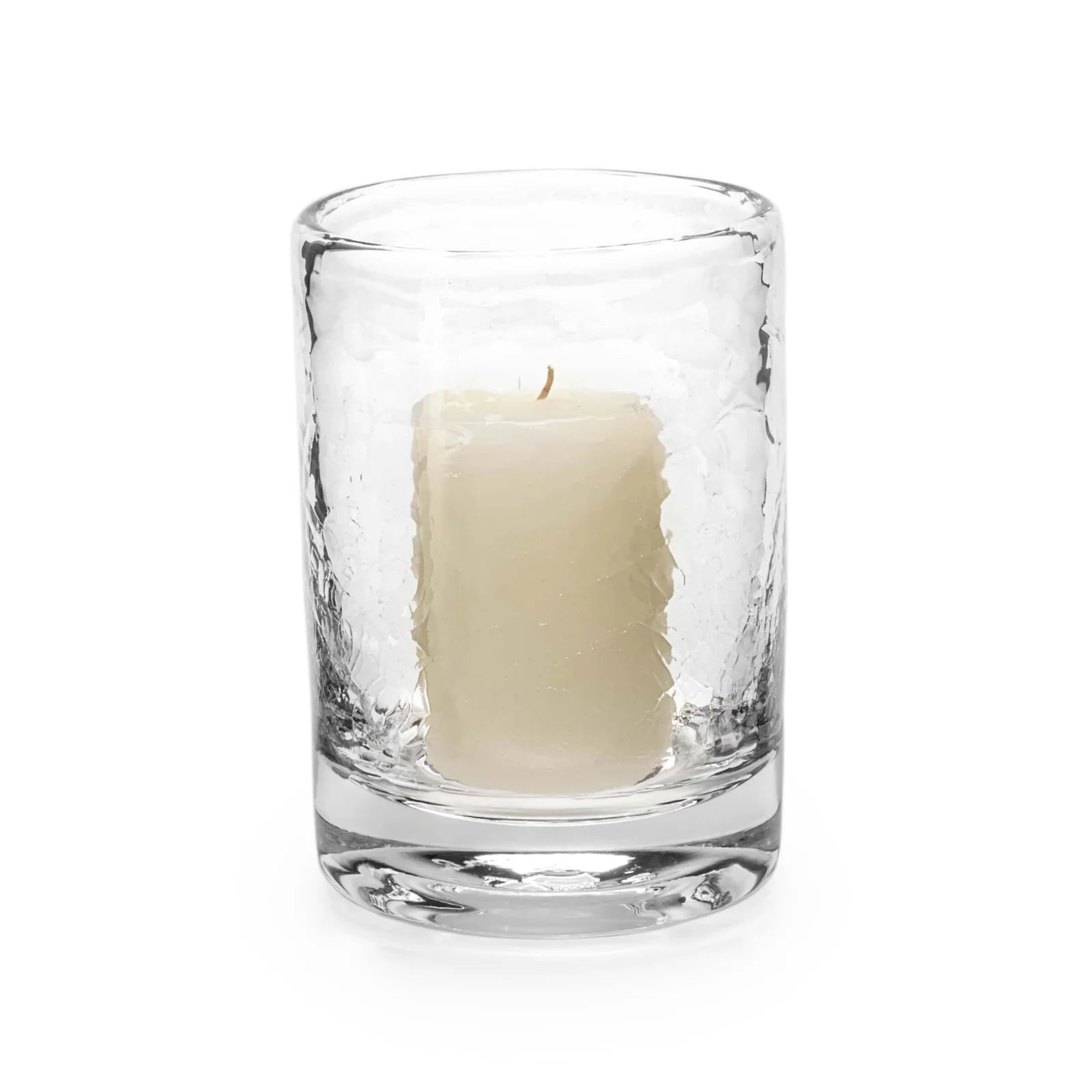 Based on the balanced proportions of our bestselling Ascutney Collection, we’ve updated this clean-lined cylindrical glass hurricane with a textural crackle effect. Carefully crafted by shocking hot glass in a bath of cool water, the beauty of this technique is made even more brilliant by illuminating from within.