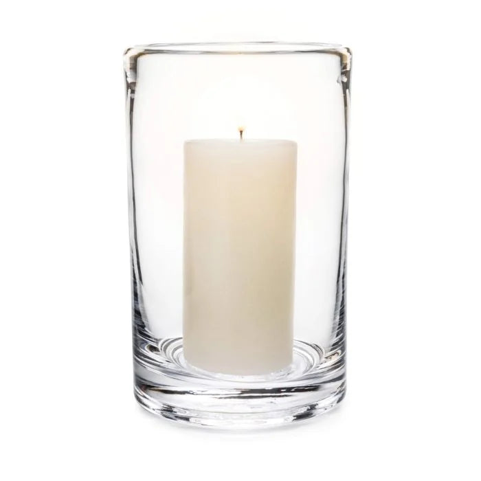 This Simon Pearce handmade glass hurricane adds clean-lined simplicity to any space. Show off the brilliance of handmade glass by illuminating from within, or use it as a countertop crock for wooden spoons and the like. Ideal for engraving.