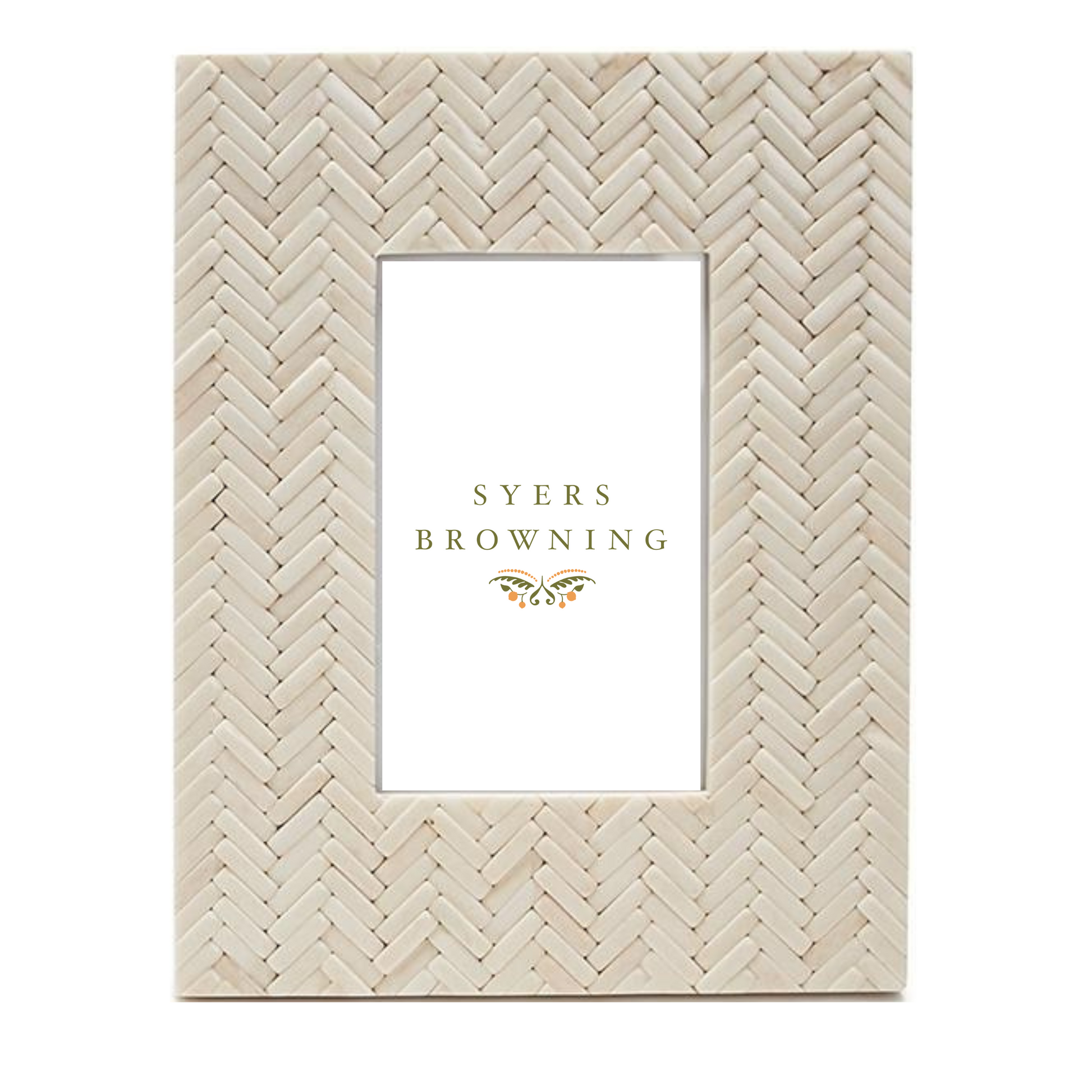 Witness the seamless fusion of modern aesthetics and timeless beauty with this exquisite set of natural bone photo Frames. Each piece is meticulously crafted, where intricate patterns are created from small fragments of bone. Each piece of delicately hand-carved bone comes together in perfect harmony by the craftsman. Utilizing a nice and clean design we have elevated this ancient handicraft technique to new heights, adding a contemporary twist to this age-old artistry. Experience the captivating blend of traditional craftsmanship and modern design as these stunning frames transform your cherished memories into works of art, creating a truly remarkable display that captivates the eye and enhances your home decor.