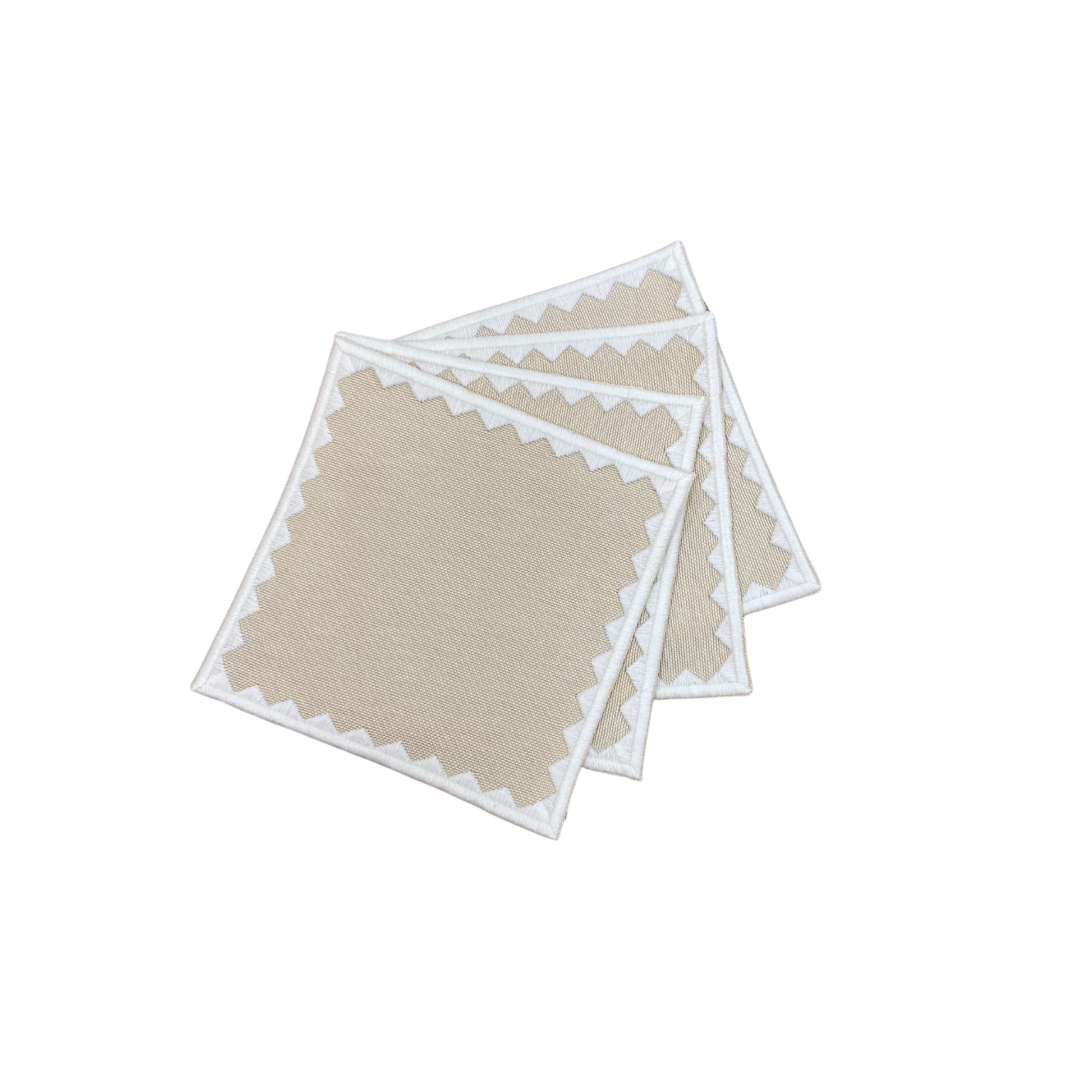 Perfect for serving cocktails in style, these cocktail napkins add a refined touch to any drink presentation. Featuring a white zigzag embroidered border, this napkin brings a sophisticated accent to your cocktail or wine.