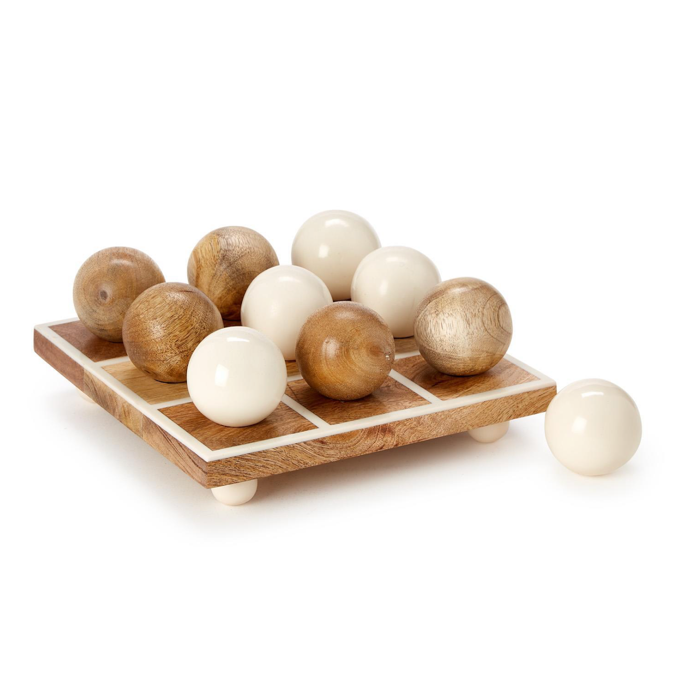 Elevate your game room with the San Marco Hand-Crafted Footed Tic-Tac-Toe Game. This exquisite piece, made with Mango Wood and Resin, adds a touch of artisanal charm to any space. Picture it on a rustic coffee table or elegant sideboard, inviting lively competition and stylish flair. Each game set is meticulously hand-crafted, showcasing unique variations and a one-of-a-kind appeal.