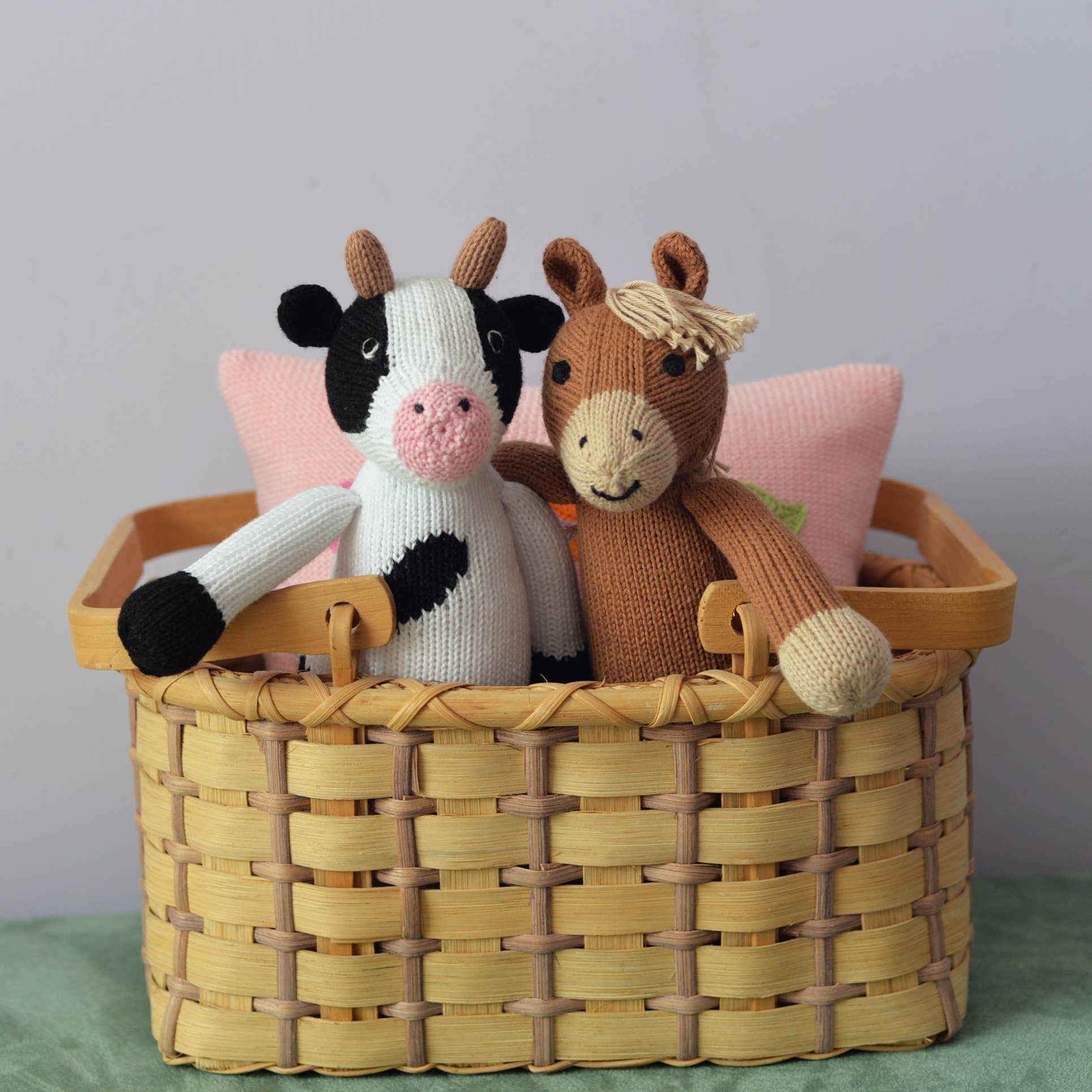 Get ready to gallop with this adorable knitted horse stuffed animal! With its soft and cuddly texture, this toy is perfect for snuggling up with. Bring some whimsy and charm to your child's playtime with this unique and playful addition to their stuffed animal collection.
