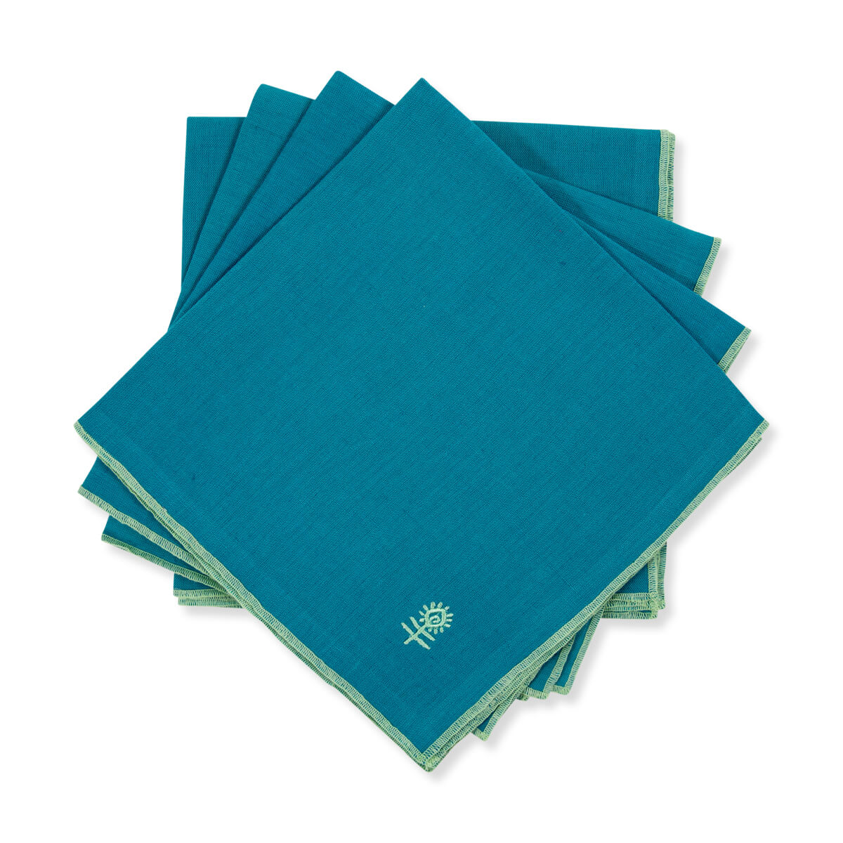 these linen napkins are an entertaining go-to. Crisp luxe linen with coordinating contrast trim, and a charming embroidered logo in the bottom corner.