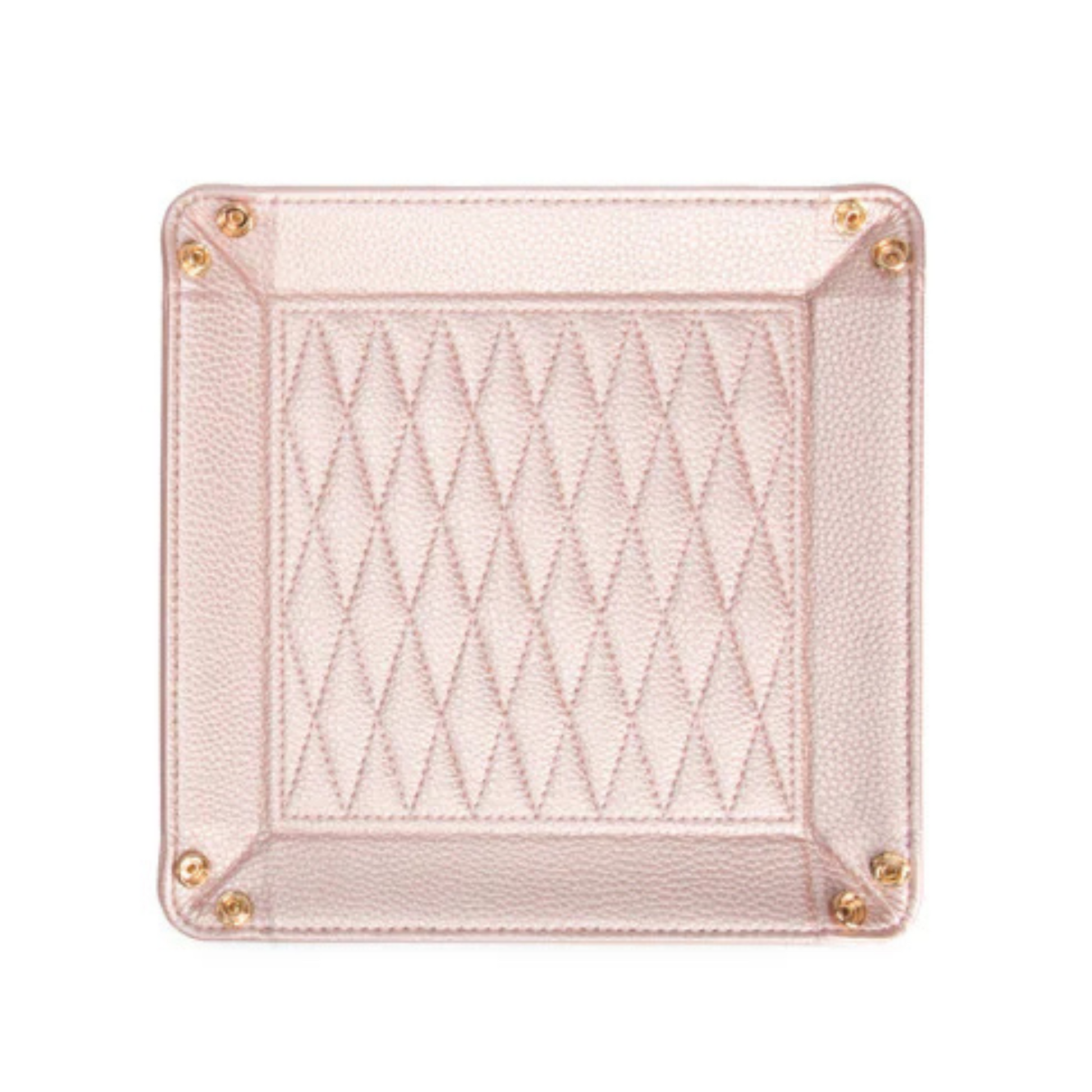 Made with premium quilted vegan leather, these throw all trays are as stylish as they are functional. The sleek design and metal button snaps on each corner make it easy to pack flat and take with you on all your travels. Use it at home to store your keys, wallet, and other essentials in one easy-to-find place. Or take it on the road with you to keep your travel accessories in order.