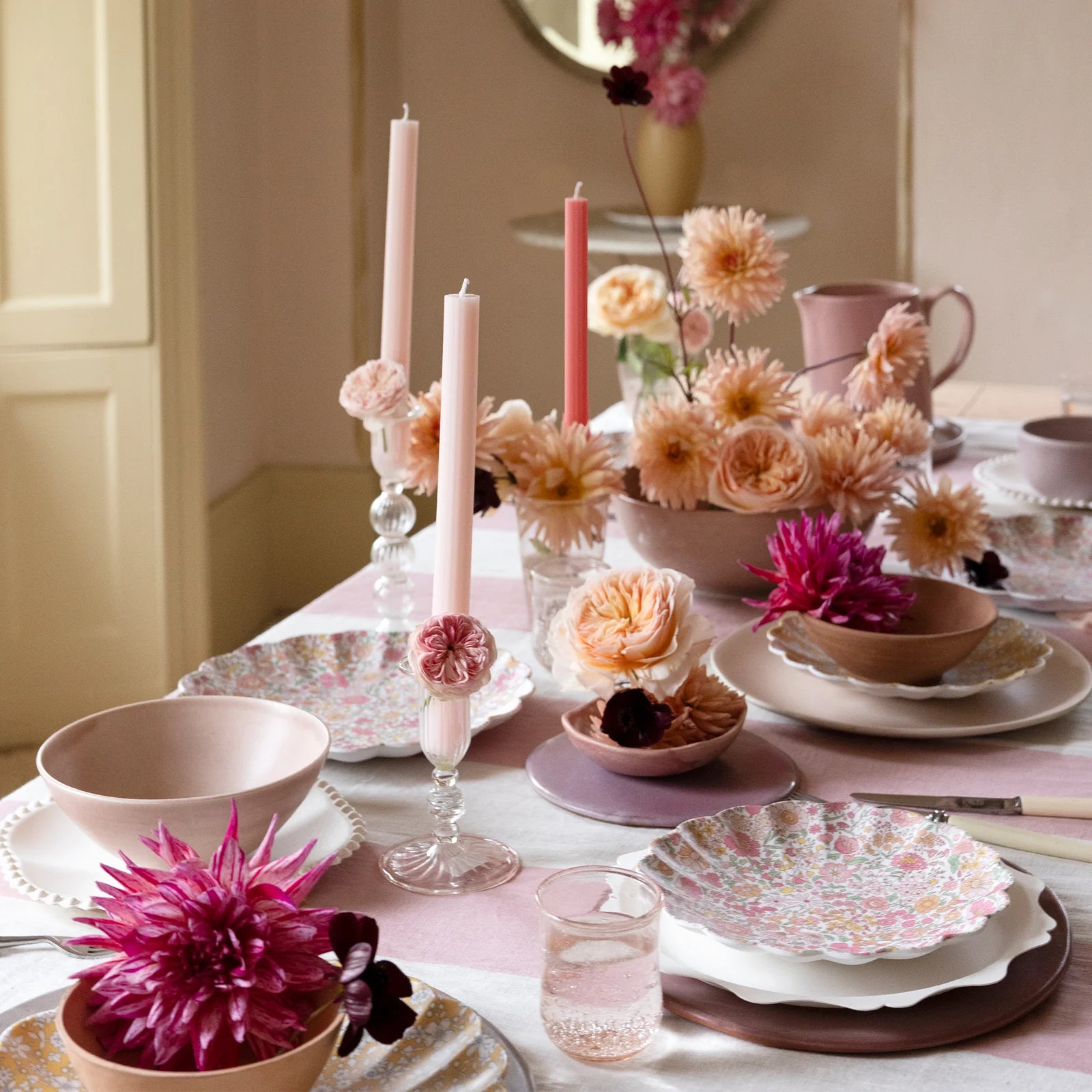 We've created this beautiful candle collection as part of a collaboration with Liberty, to add sophisticated decor to your home. Ten ridged candles, in five colors, are packaged in a gift box adorned with a Liberty floral print design and ricrac ribbon embellishment on the outside, and stripes on the inner. These long candles make wonderful table or mantel decorations at a dinner party or afternoon tea. Light to radiate a soft glow, or reuse time and time again if not lit. Place individually or combine for a centerpiece of color. They also make the perfect host gift or present for someone who adores statement candles. Driven by discovery, Liberty has been home to the artistic shopper since 1875. Famed for its directional design and celebration of craftsmanship, its prints are created in the heart of London by the Liberty design studio.