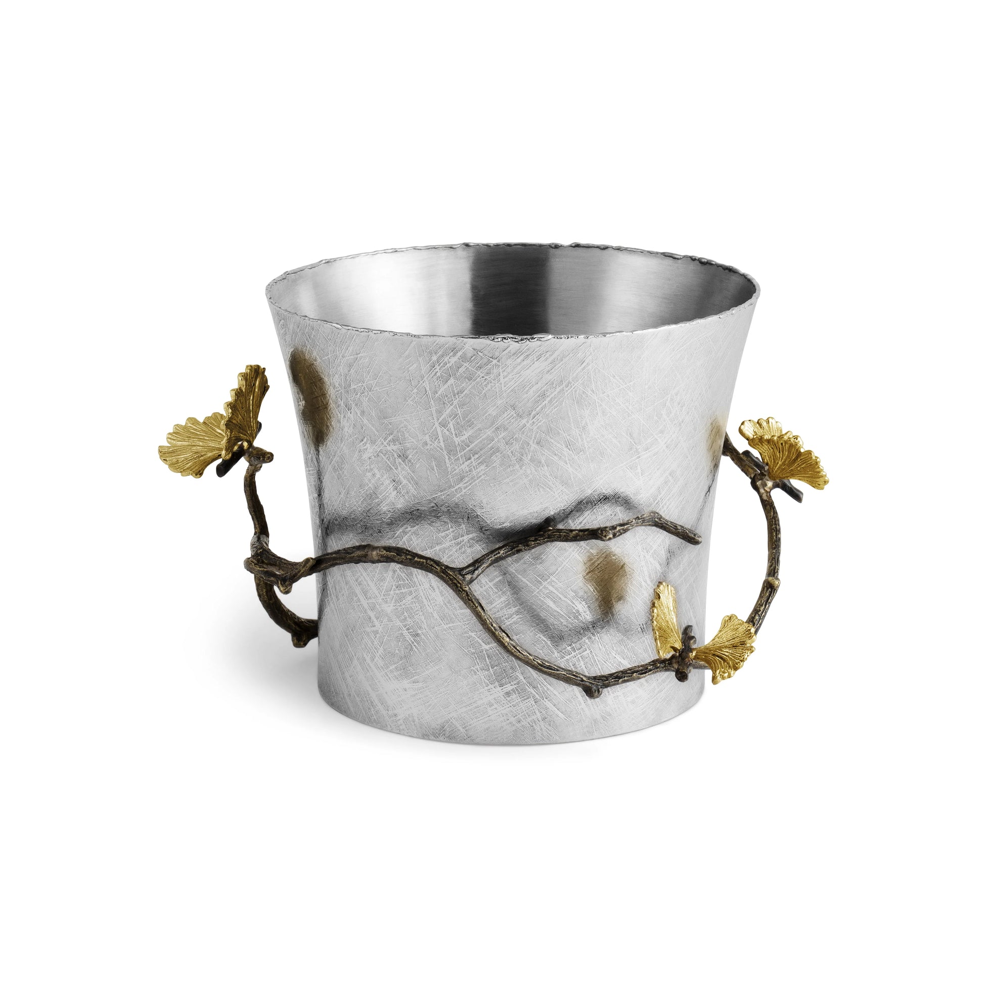 The Butterfly Ginkgo Collection celebrates the representation of flora as fauna. Michael's fascination with a particular type of ginkgo tree , the Ginkgo Biloba, or "Butterfly Ginkgo", which grows with a double leaf reminiscent of a butterfly's wings, gave rise to a fantasia image of the plant. Executed at the highest level of handcraftsmanship, each piece is rendered in solid brass with hand etched cocoon-shaped vessels. The pieces in the collection are a tour de force of the handcrafted process, capturing the poetic spirit that is so deeply indicative of Michael's work.