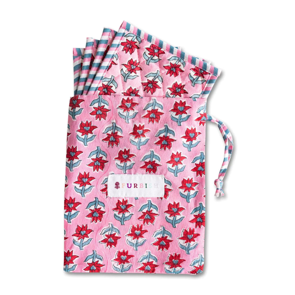 With our coordinating napkins, placemats, coasters, and dish towels, you could own the whole set or create an insta-worthy table scape with raffia napkin rings and coordinating Furbish prints designed to mix and match.